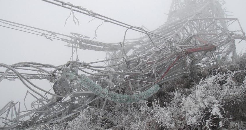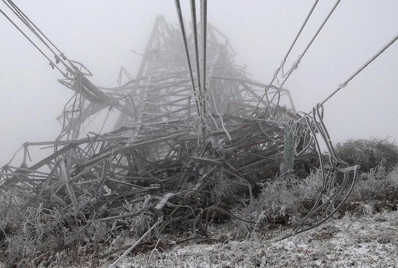 冰凍風(fēng)吹 電線拉倒鐵塔